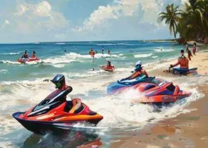Motos aquáticas em Saquarema geram insegurança entre banhistas devido à velocidade.